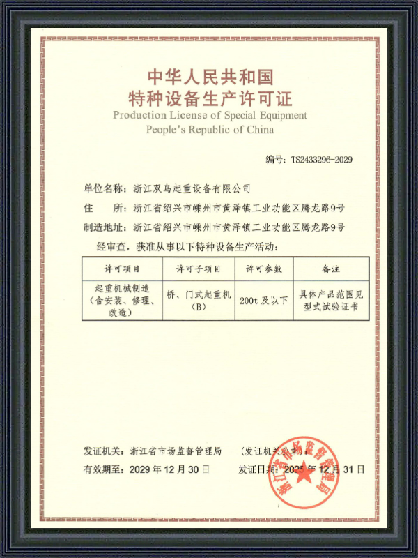 গণপ্রজাতন্ত্রী চীনের বিশেষ সরঞ্জাম উত্পাদন লাইসেন্স